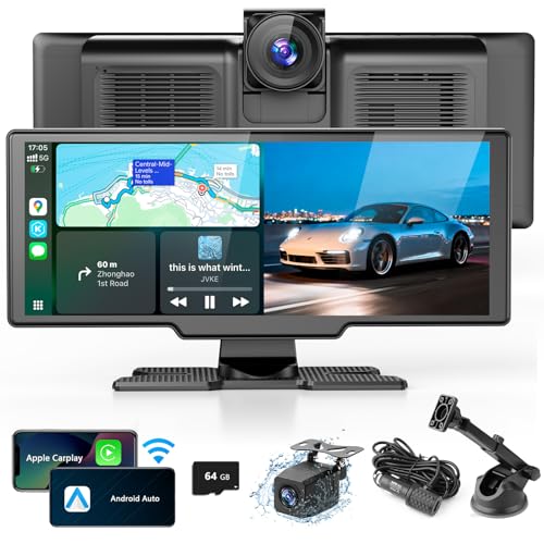 Wireless Car Stereo for Apple Car Play Android Auto with 4K Dash Cam Front, 10.26" Touch Screen CarPlay Radio, Loop Recording,1080P Rear Camera, Mirror Link,GPS Navigation,Bluetooth,64G TF,Siri/FM