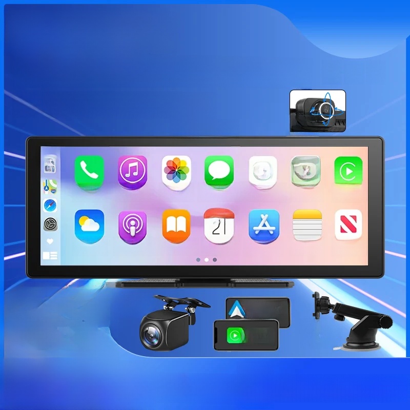 Portable Wireless Carplay Car Stereo with Dash Cam - 10.26In HD IPS Screen, Android Auto, 1080P Backup Camera, Bluetooth