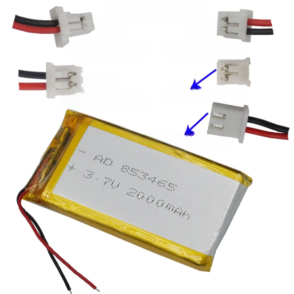 3.7V 2000mAh 7.4Wh Li-Polymer Li Lithium Battery 853465 JST 2pin 1.0/1.25/1.5/2.0/2.54 For GPS Bluetooth Speaker GPS Dashcam