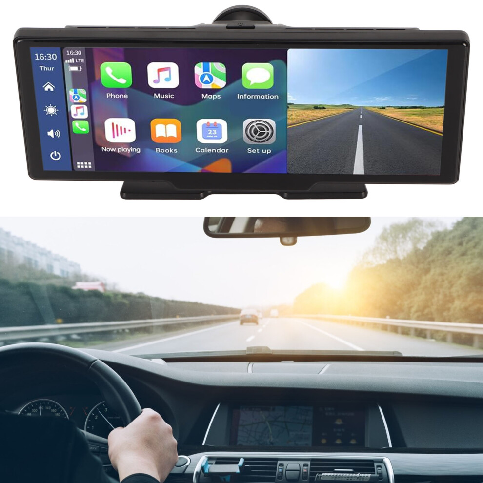 Portable Wireless Carplay Screen with Dashcam - Lehwey 10.26 Inch Car Play Tablet with 4K Front Dash Cam & 1080P Rearview Backup Camera, Bluetooth 5.