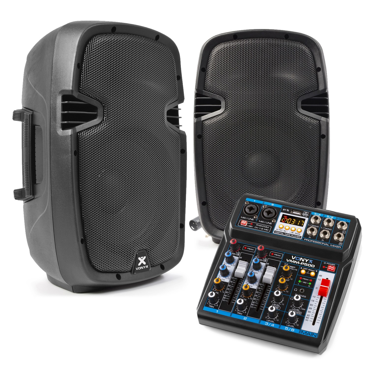 Vonyx SL6 Speakers with AV440 Bluetooth Mixer & Microphone - DJ System