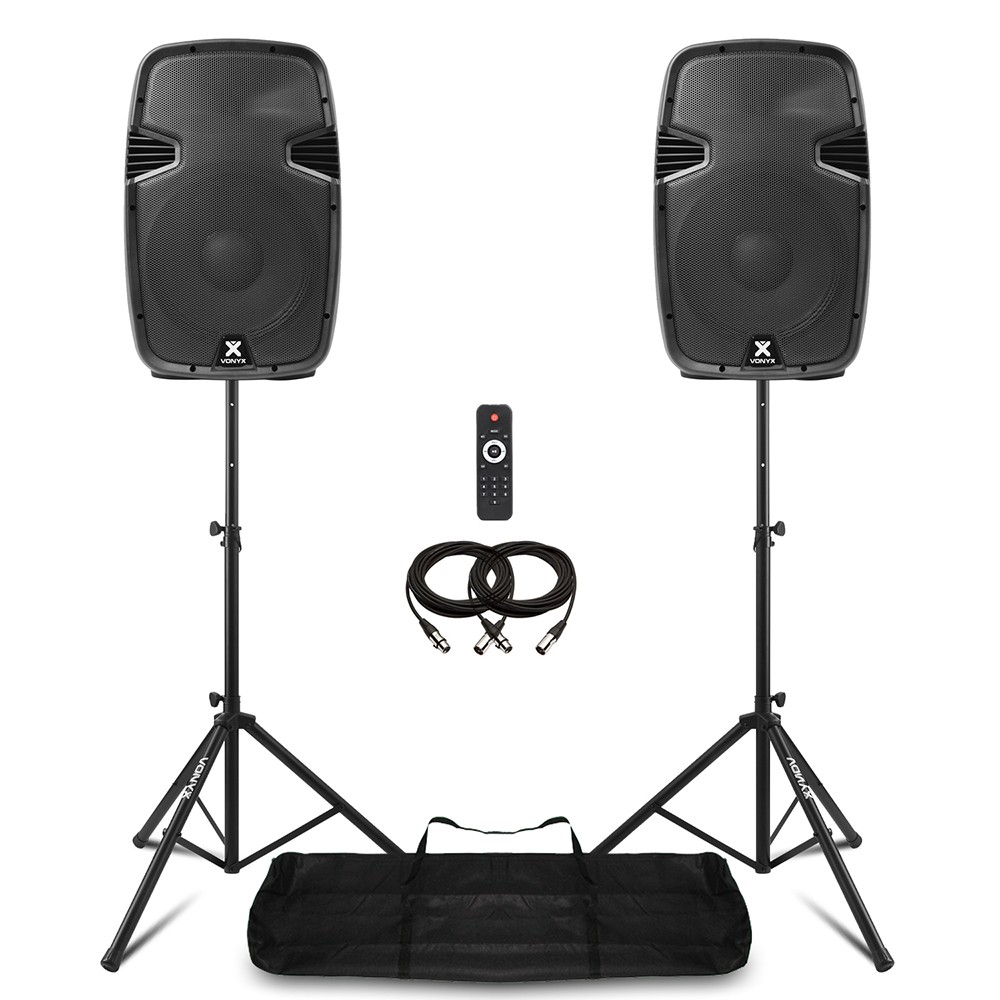 Vonyx VPS152A 15" Active Bluetooth Disco Speakers DJ PA System wth Stands & Bags