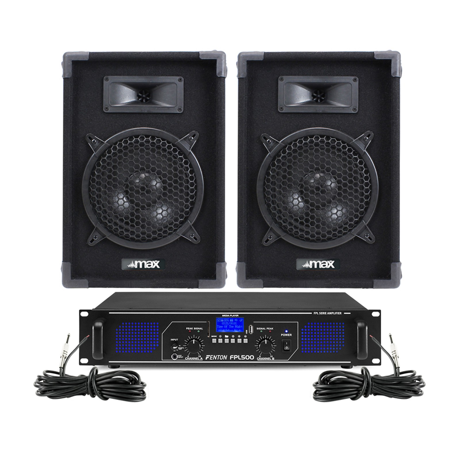 MAX 8" Passive DJ Speakers Pair with FPL500 Amplifier - Bluetooth Home Audio