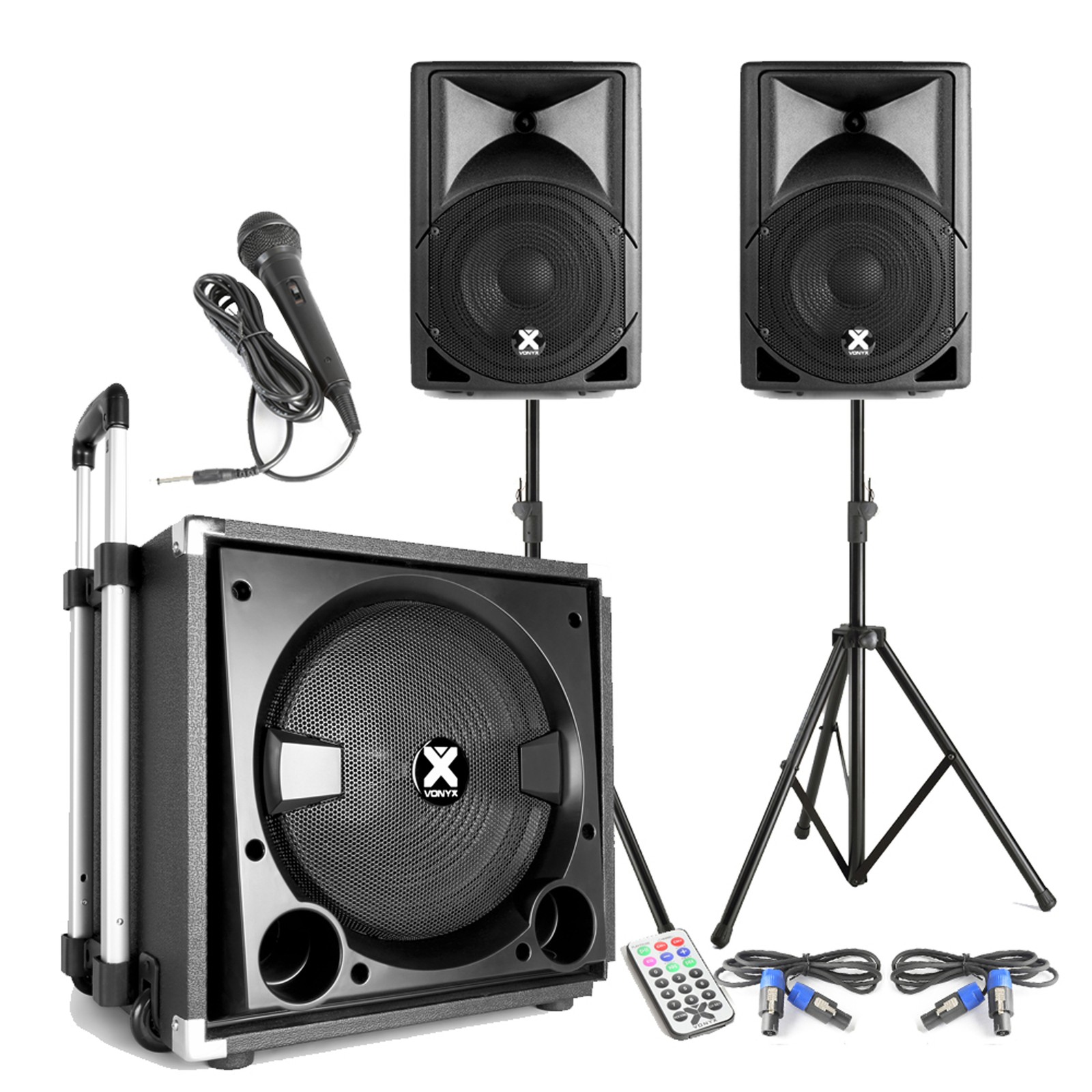 Vonyx VX800BT 2.1 Active PA Speaker System 800W with Bluetooth, Powered Subwoofer, Speakers, Stands & Microphone - DJ, Karaoke