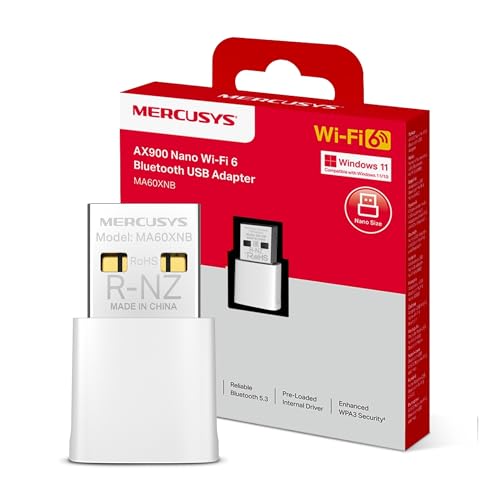NEW Mercusys MA60XNB AX900 Nano WiFi 6 WiFi Dongle,WiFi Adapter for PC,USB Bluetooth Dongle for PC,WiFi and Bluetooth 5.3 Two in One,Dual Band Wireless, WPA3 Security,Supports Windows 10/11(64Bit)