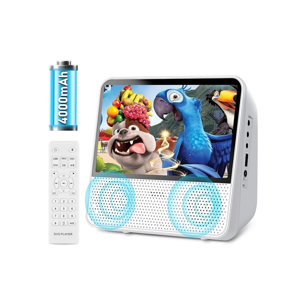 Portable DVD Player with 4000mAh Rechargeable Battery, Supports Disc/Bluetooth/USB/AV, Car CD DVD Players