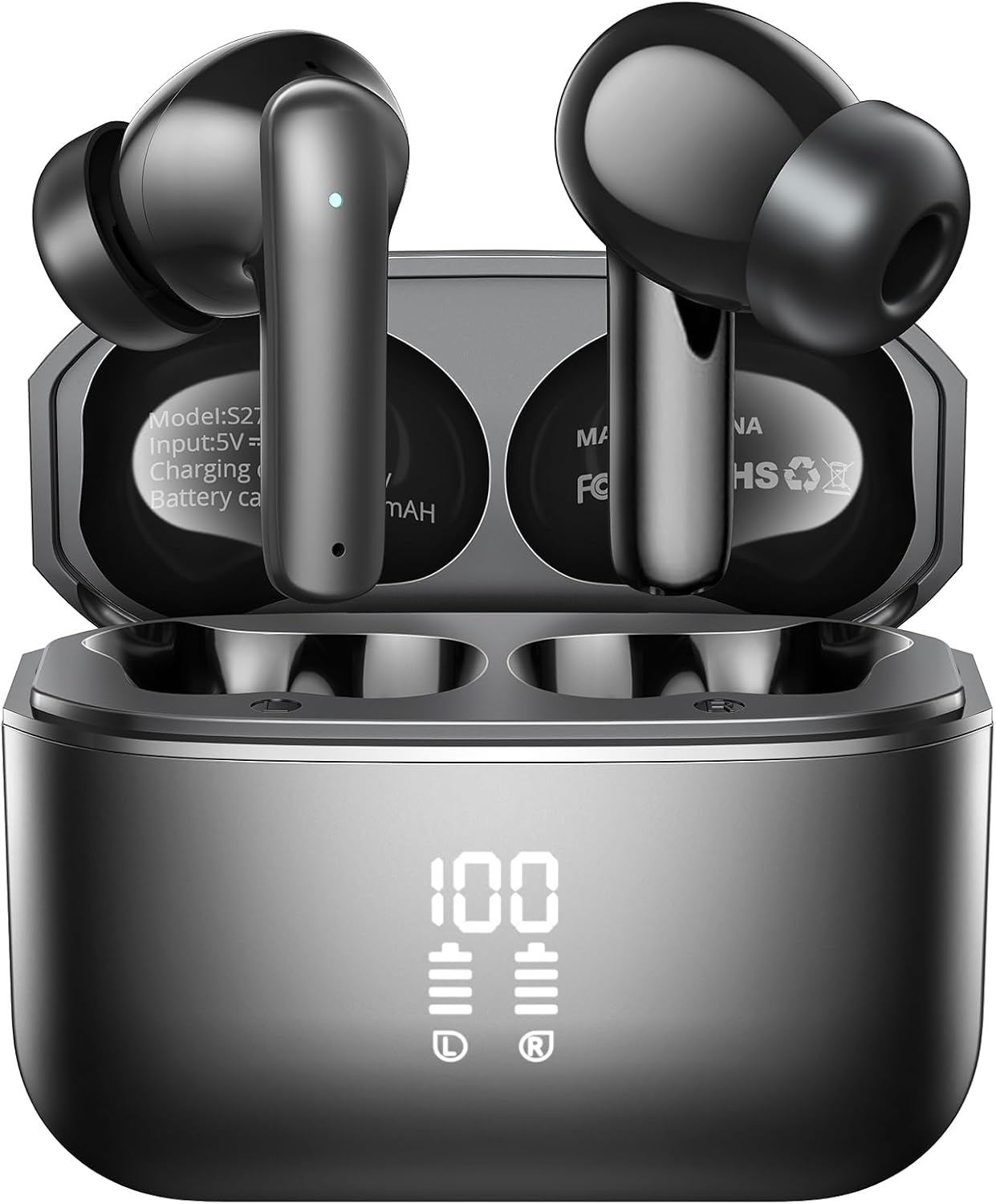 (Black) TWS Earphones Wireless bluetooth 5.0 Headphones 13mm Dynamic Stereo Bass Noise Reduction LED Display Smart Touch In-Ear Sports Earbuds with Mi