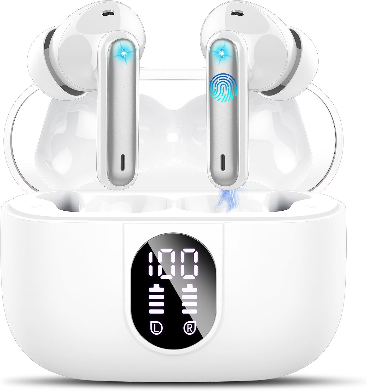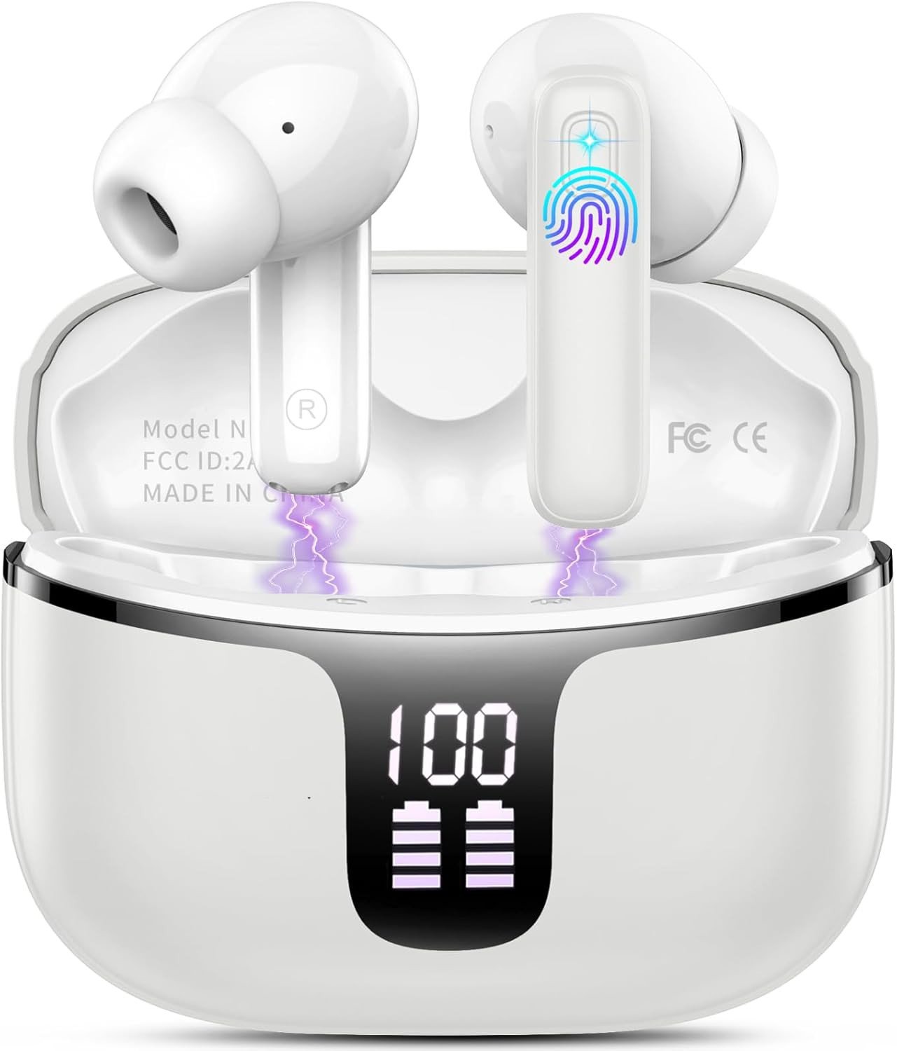 (White) TWS Earphones Wireless bluetooth 5.0 Headphones 13mm Dynamic Stereo Bass Noise Reduction LED Display Smart Touch In-Ear Sports Earbuds with Mi