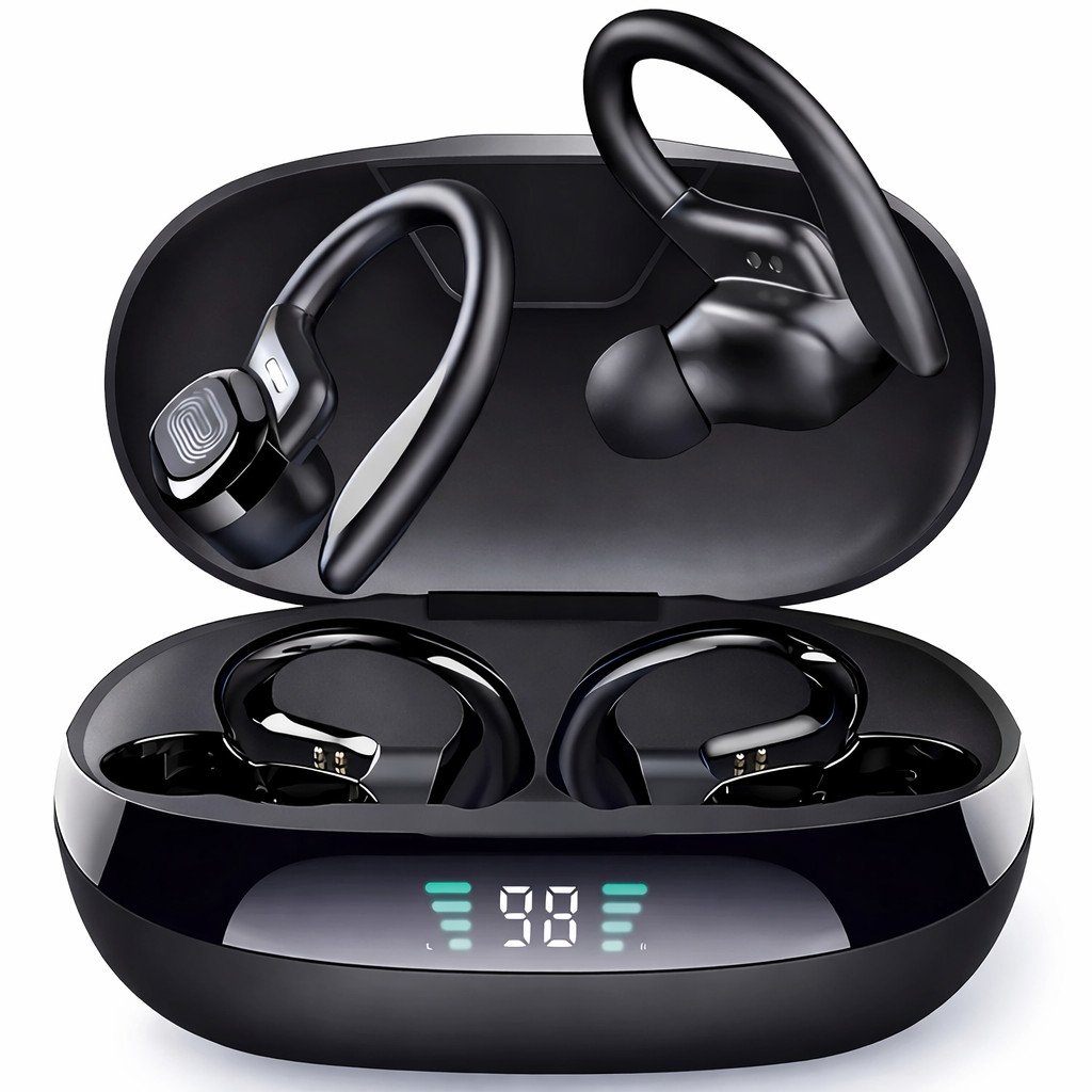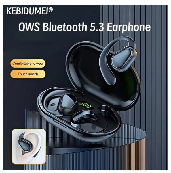 (a-black) New Ear Hook Y7 Wireless Headphones Tws With Digital Display Bluetooth Earphones 5.3 For Sports Running Earbuds Gaming Headset