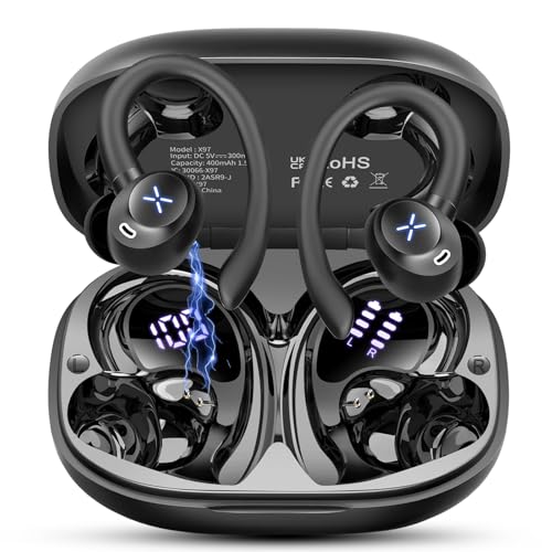 Wireless Earbuds Sport, Bluetooth 5.4 Headphones with 50H Deep Bass Stereo, Wireless Earphones with Earhooks 4 ENC Noise Cancelling Mic, Bluetooth Earbuds IP7 Waterproof, LED Display for Running/Gym