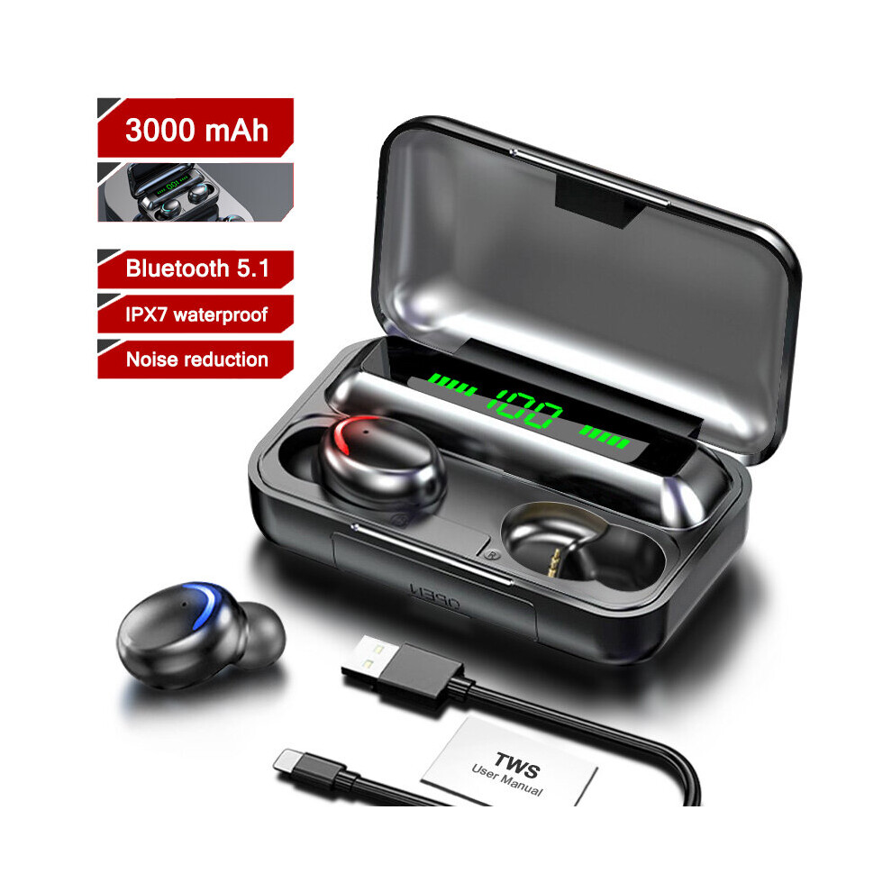 (a-Bluetooth Headphones) F9 TWS Headphones Bluetooth Earphones Wireless Headsets with Mic 3000mAh Charging Box Stereo In-Ear Earbuds Sports