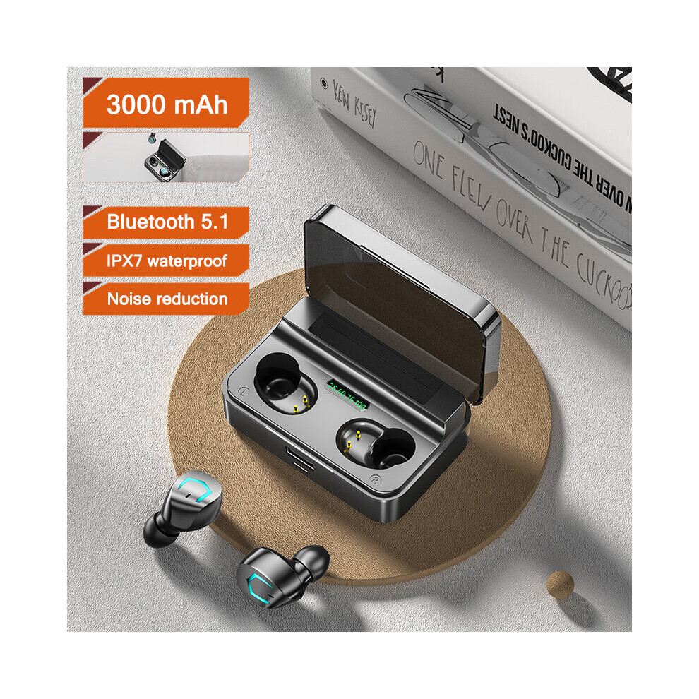 (a-Black) F9 TWS Headphones Bluetooth Earphones Wireless Headsets with Mic 3000mAh Charging Box Stereo In-Ear Earbuds Sports