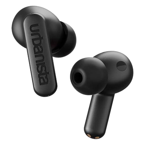 Urbanista Atlanta Hybrid Active Noise Cancelling Wireless Earbuds, Deep Bass Splash Resistant Headphones, Bluetooth Multipoint Earphones, Transparency Mode, Wireless Charging Case, Midnight Black