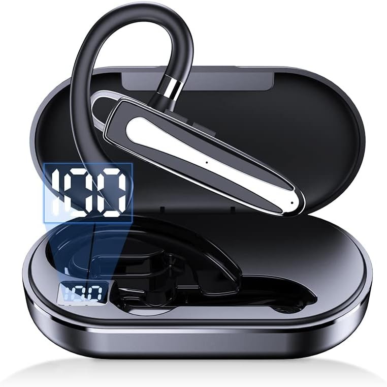 Bluetooth Headset V5.4, 60H Talk Hands Free Car Phone Kit, Bluetooth Earpiece with Microphone, Single Wireless Headset with LED Charging Case, Wireless Earpiece for Driving/Business/Office, Black