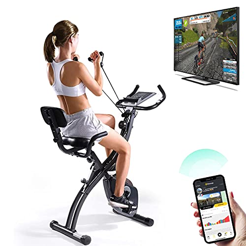 Sunny Health & Fitness Smart Folding X-Bike, Compact Home Exercise Bike for Indoor Use, Full-Body Low-Impact Workout, Cardio Training, 14-Level Magnetic Resistance, Bluetooth & Free SunnyFit App + Sun