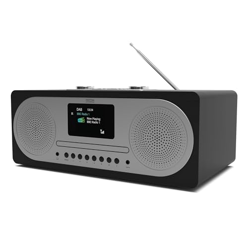 DAB/DAB+ & FM Digital Radio with CD Player | Bluetooth & USB MP3 Player | Premium Sound | Remote Control | Mains Powered | Perfect for the Home or Office | AZATOM Clockwood (Black)
