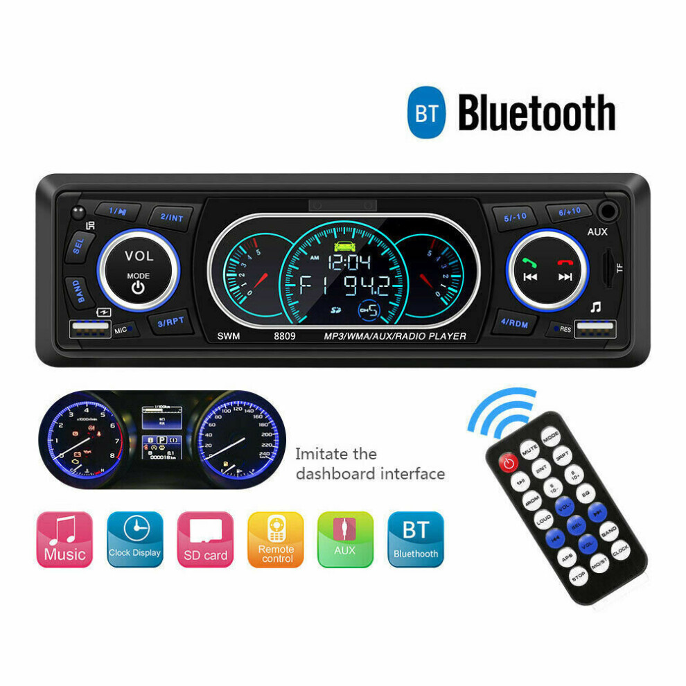 Single DIN Car Stereo MP3 Player Bluetooth FM SD 2 USB AUX Audio Radio Head Unit