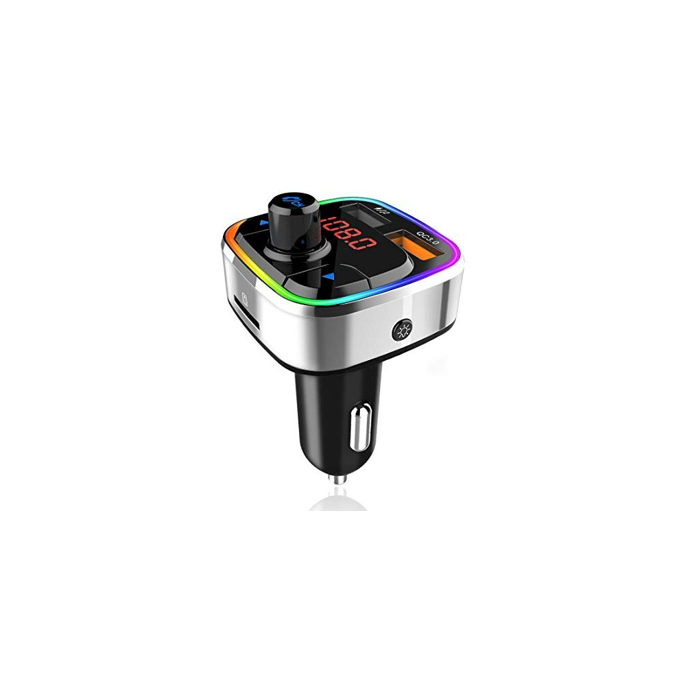 Chronus Bluetooth FM Transmitter for Car, QC3.0 & USB-C PD 18W Quick Charger & 7 Colors LED Backlit Car Radio Bluetooth Adapter, MP3 Music Player with