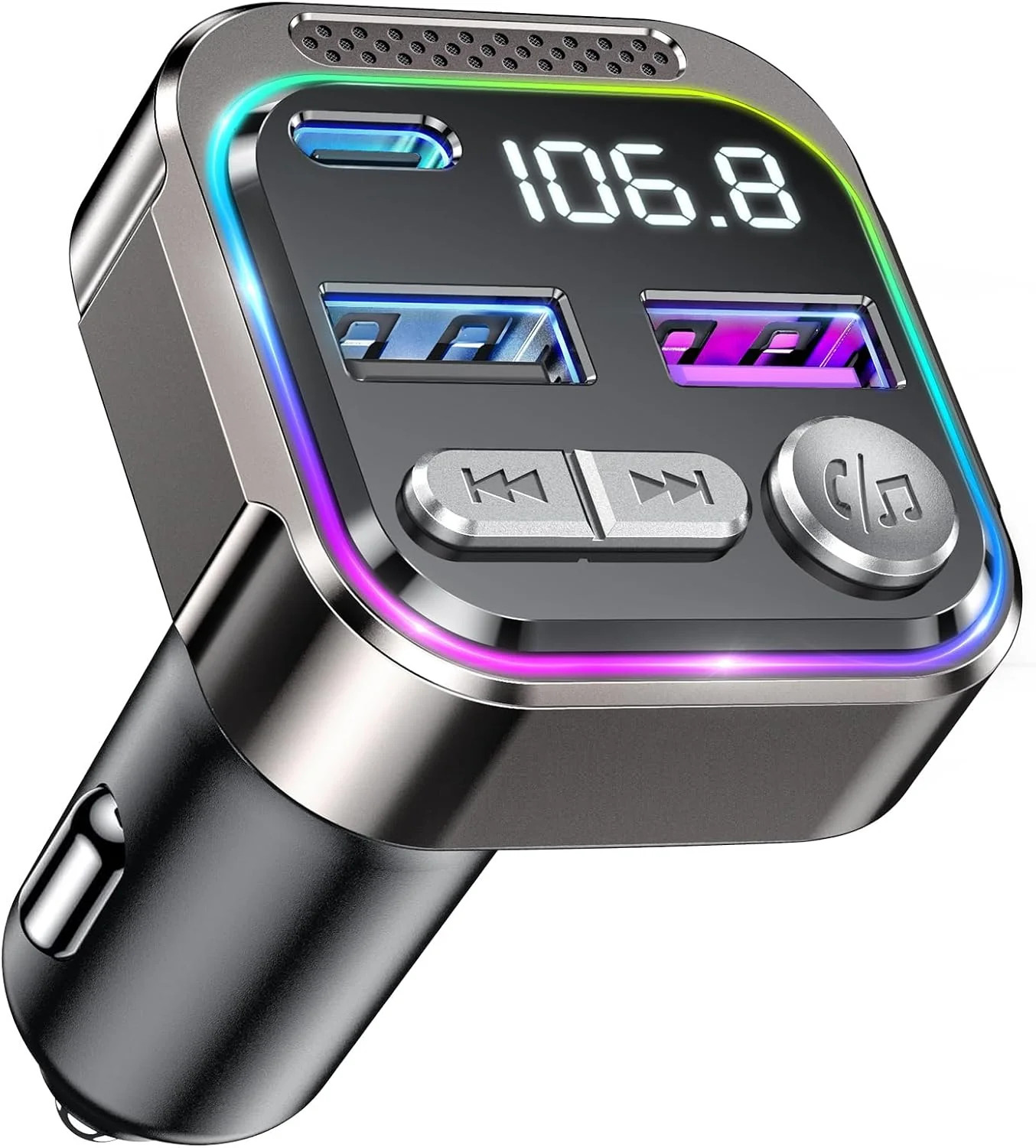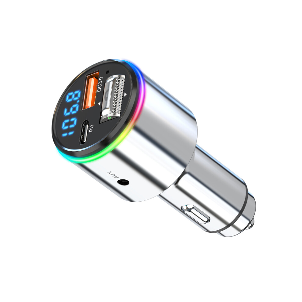 Chronus Car Bluetooth FM Transmitter, Bluetooth FM Radio Adapter, Support PD30W QC18W Fast Charging, Colorful Breathing Ambient Light, One Key Hands