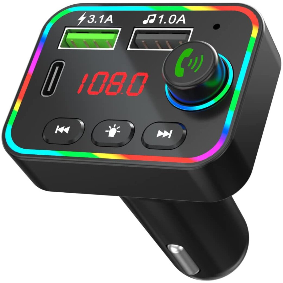 FM Transmitter Bluetooth,36W Type-C PD+QC3.0 Car Fast Charger,Wireless Bluetooth 5.0 Radio Adapter Car Kit with 7 Colors Light