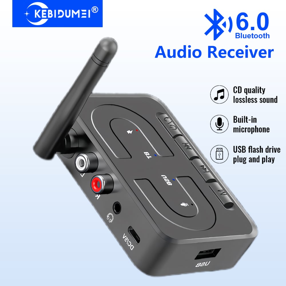 Bluetooth 6.0 Receiver 3.5mm Jack AUX 2RCA USB Hi-Fi Stereo Bluetooth Audio Adapter Receivers For PC Car Speaker Amplifier