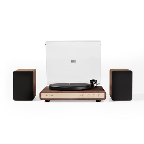 Crosley C65 Record Player with Speakers - Bluetooth Turntable with 50W Bookshelf Speakers, Easy Set Up Vinyl Player with Dust Cover, Record Player Shelf System, Audio-Technica Cartridge, Walnut