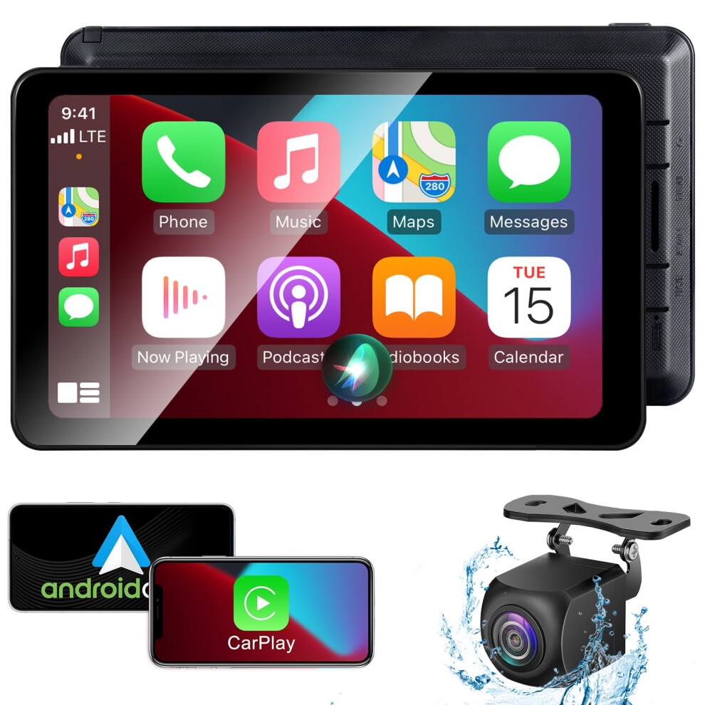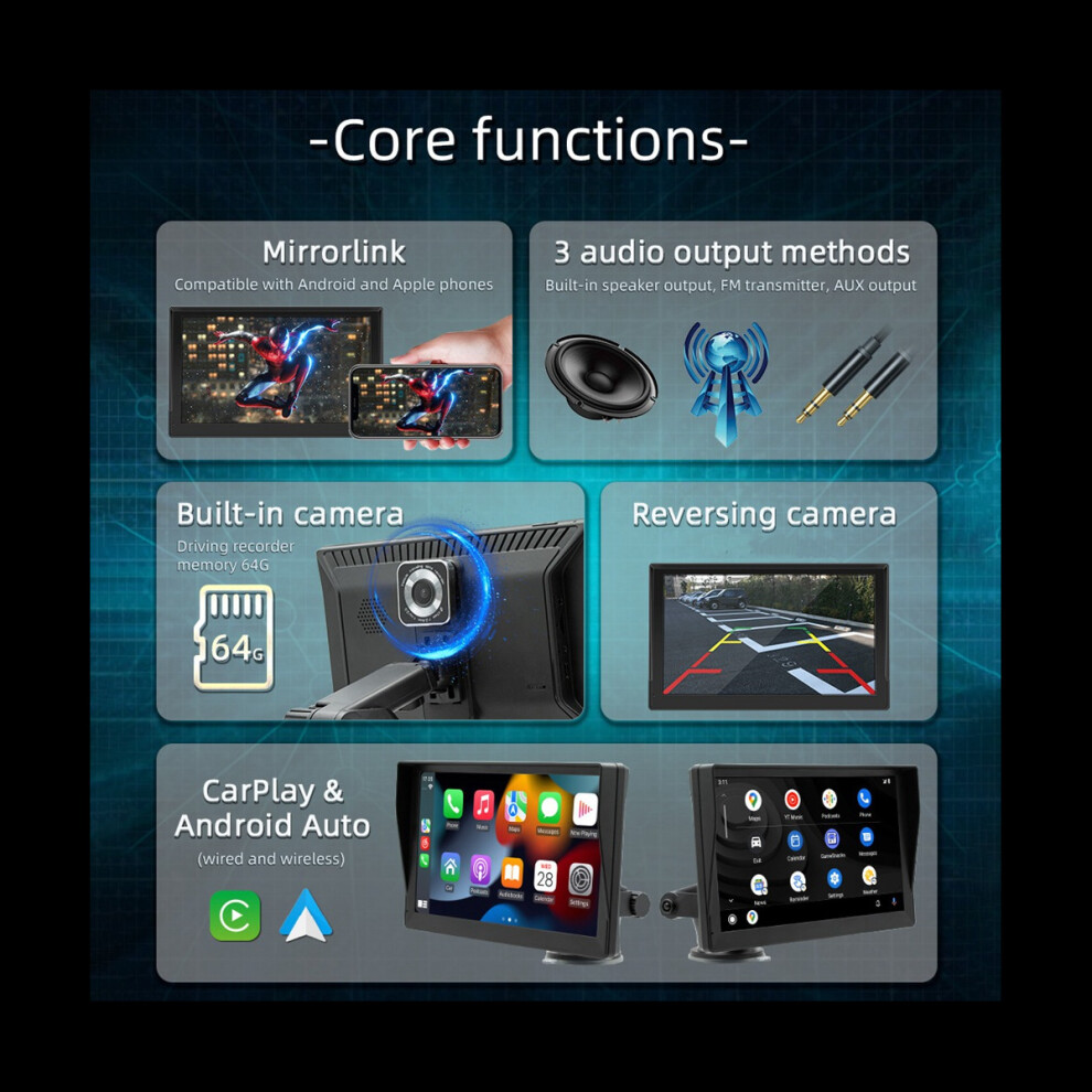 Wireless Apple CarPlay Android Auto Screen, Car Stereo 7" Touch Screen with HD Reversing Camera Portable Navigation Radio Vedio Player with Bluetooth