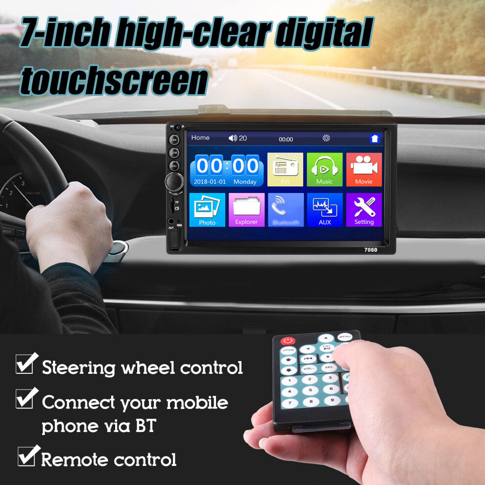 Bluetooth Car Stereo Double Din 7 Inch HD Touch Screen MP5 Player With FM Radio Hands-Free Calling Mirror Link Reversing Camera Voice Assistants And