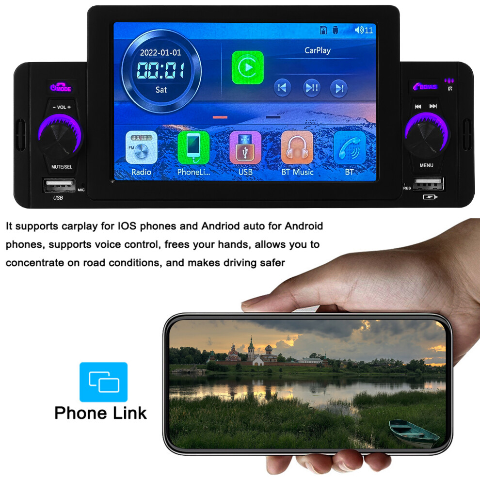 5 Inch Car MP5 Player with Reversing Camera, Bluetooth, FM Radio, Carplay & Android Auto