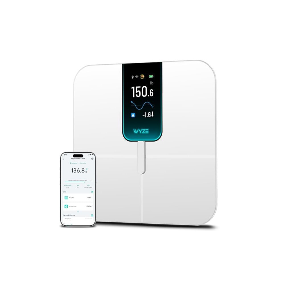 Wyze Scale Ultra, Smart Scale with 4.3" Color Display, Digital Bathroom Scale for Body Weight BMI Muscle Mass Composition, Wi-Fi & Bluetooth Body Fat Scale with Heart Rate- Black