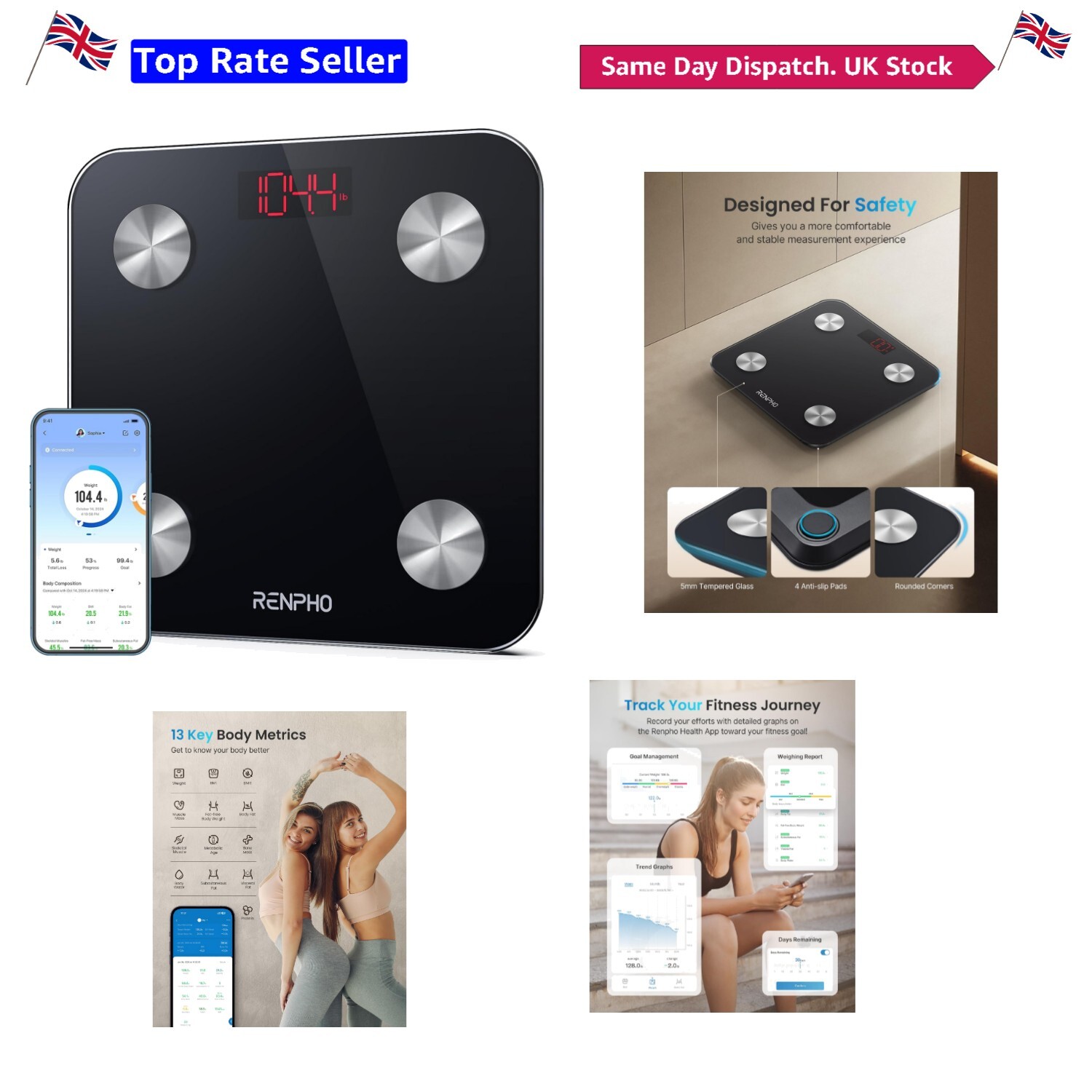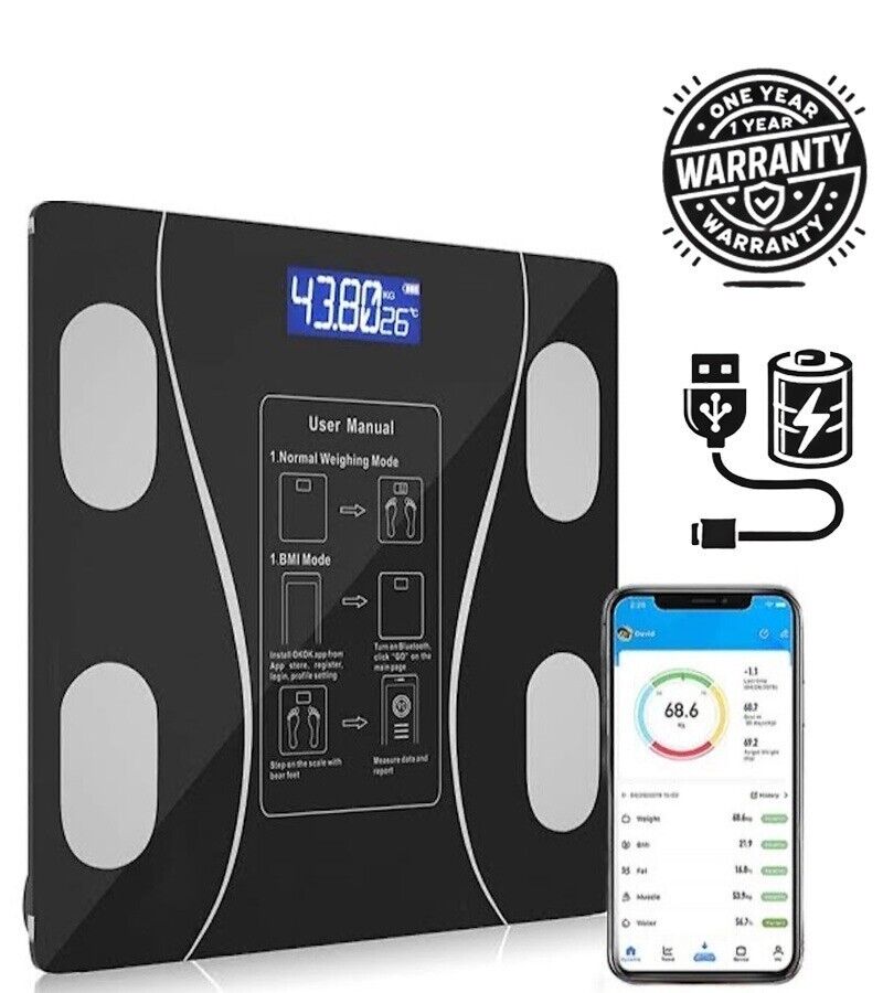 New Digital Bathroom Weighing Scale Bluetooth Body Fat Monitor Bmi Analyser UK