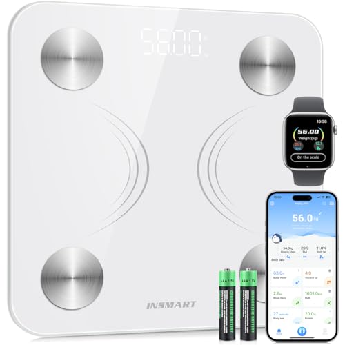 INSMART Bathroom Weighing Scales For Body Weight, Smart Digital Bluetooth Body Fat Scale Machine for Body Composition Analyzer with APP for Fitness Accurate Bmi Health Electronic (ST:LB/LB/KG)
