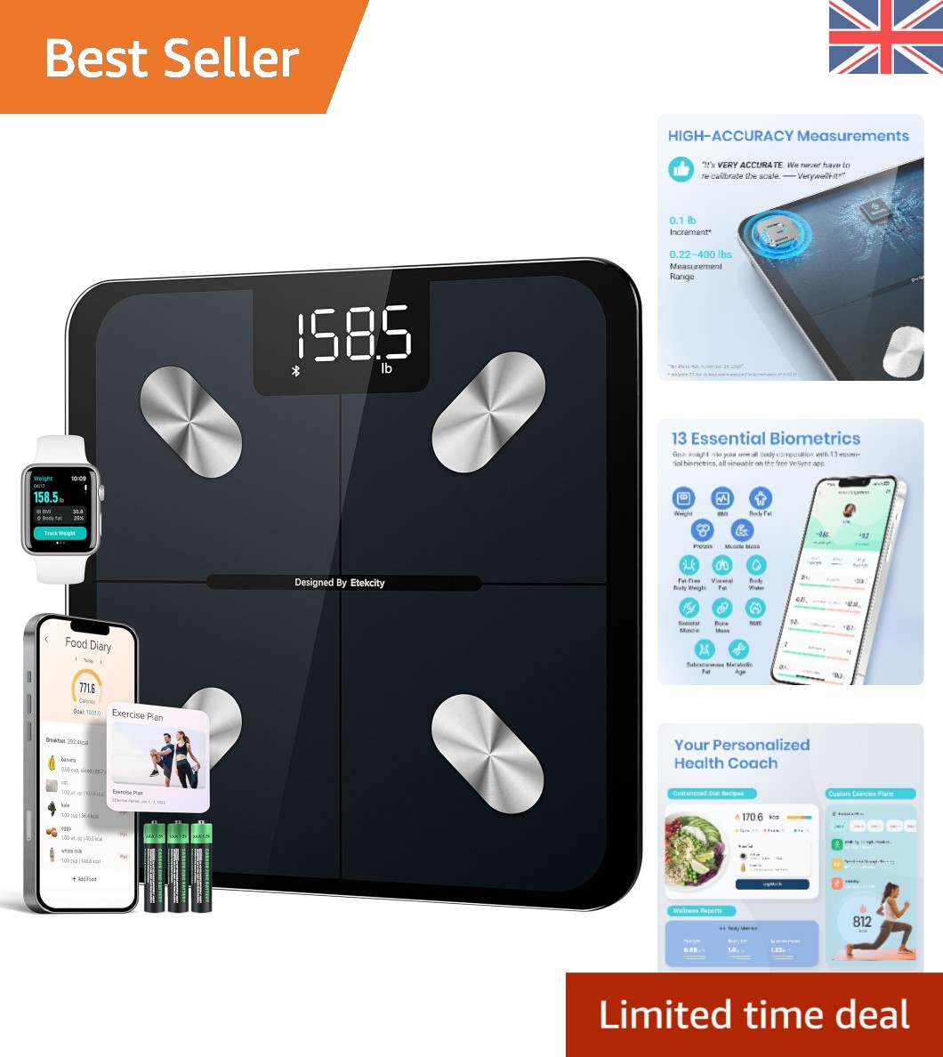 Smart Body Weight Scale: Bluetooth BMI & Fat Analyzer, 400 lb/180 kg Capacity