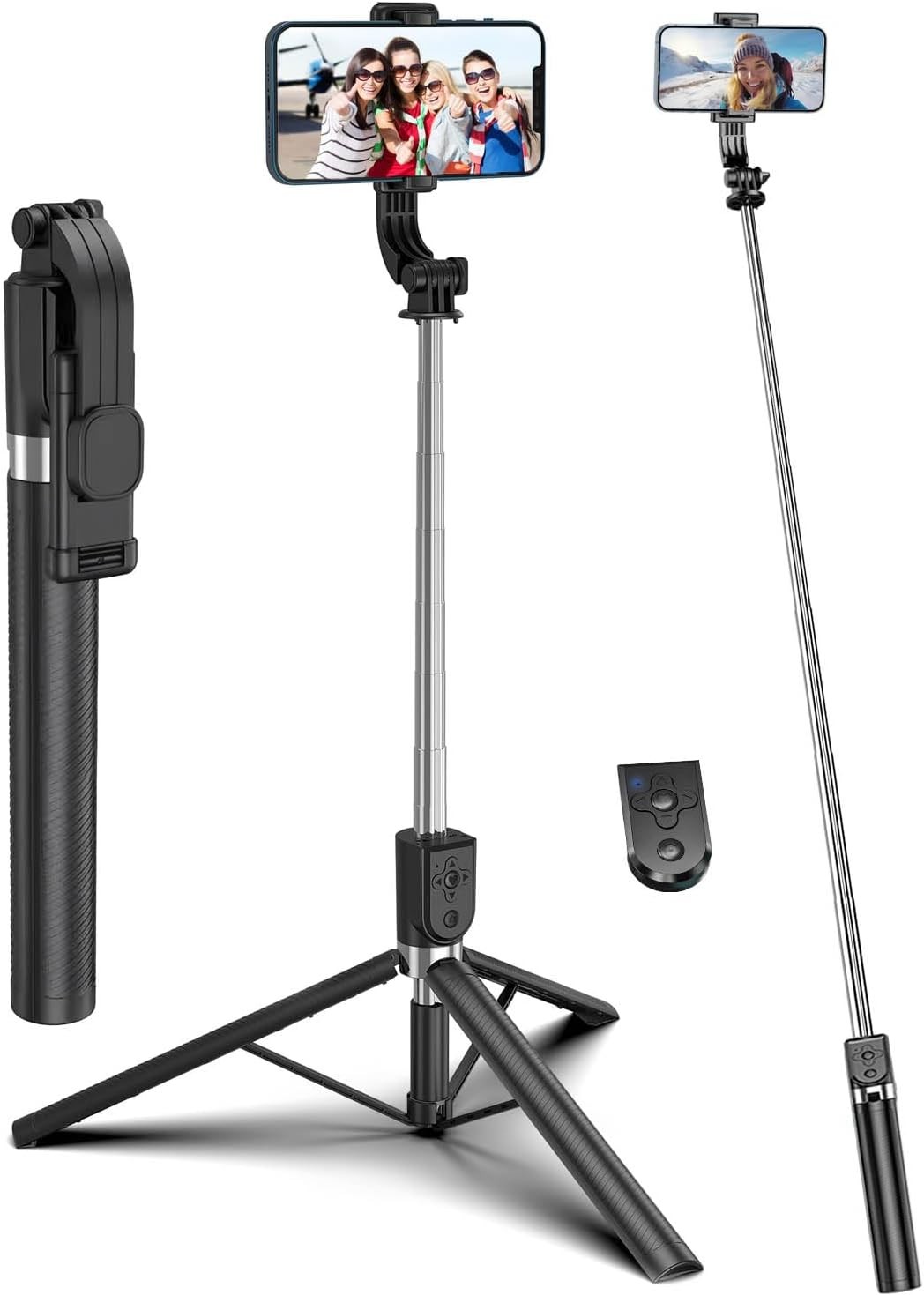 62" Phone Tripod Stand with Bluetooth Remote, Extendable Selfie Stick & Travel