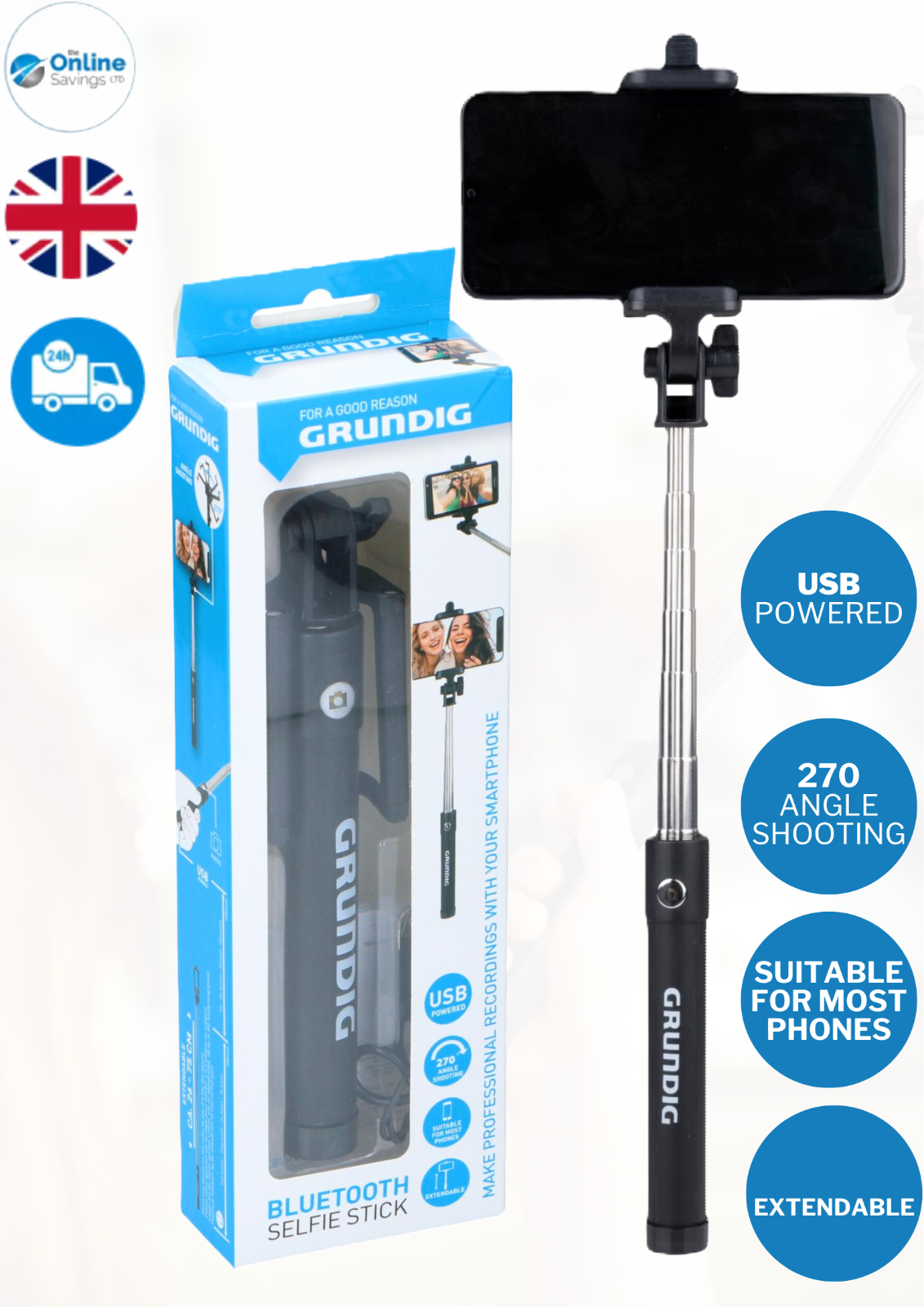 GRUNDIG Extendable Bluetooth Selfie Stick USB Powered Suitable For Most Phones