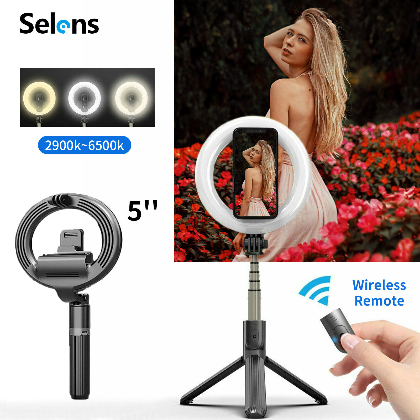 Selens 16cm Ring Light With Stand Studio Lighting Tripod Bluetooth Selfie Stick