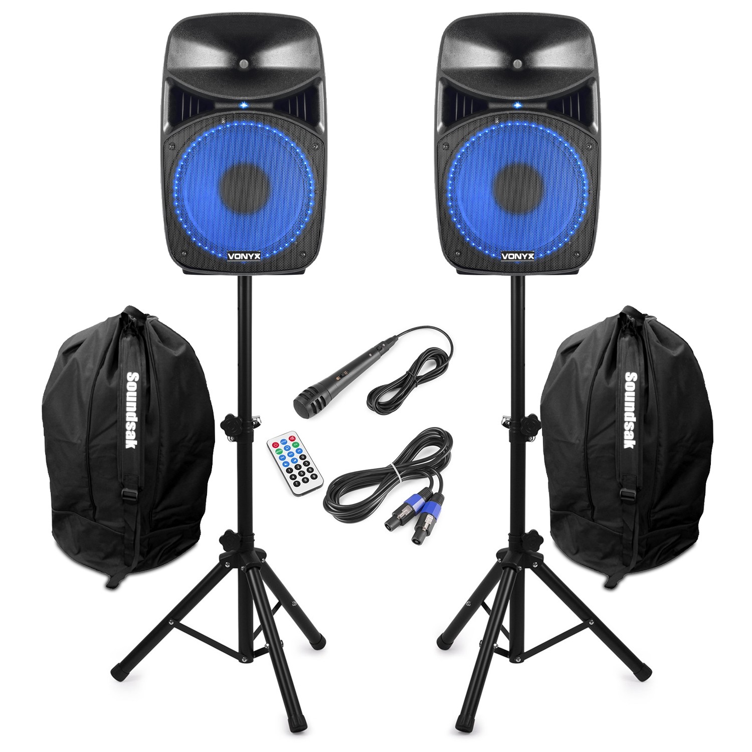 Vonyx VPS152A Bluetooth Party Speaker With Lights & Stands - 15" Active Speaker