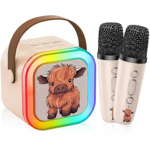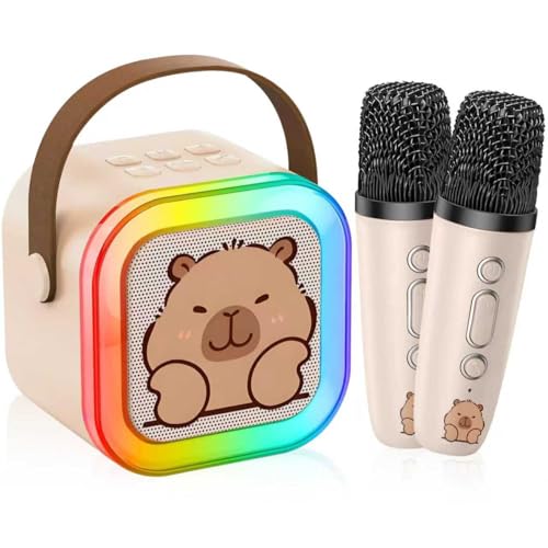 Karaoke Machine Children's Mini Karaoke Machine with 2 Microphones, Bluetooth Speaker with LED Lights and Voice Changer, Gift for Girls 3, 4, 5, 6, 7, 8, 9, 10, 11, 12+ Years (Beige)