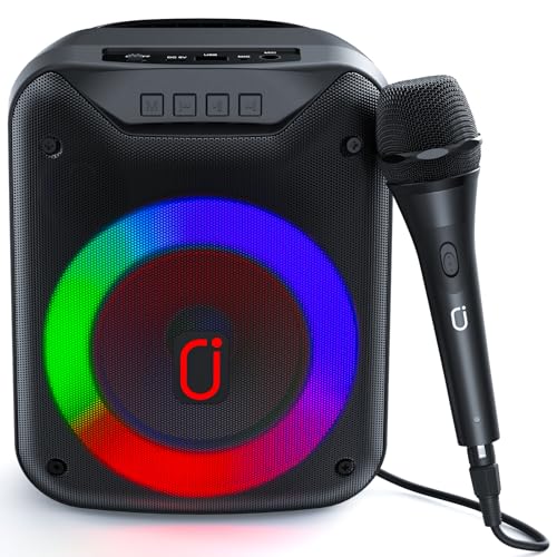 Karaoke Machine with 2 Microphones, Portable Bluetooth Speaker with Lights, USB