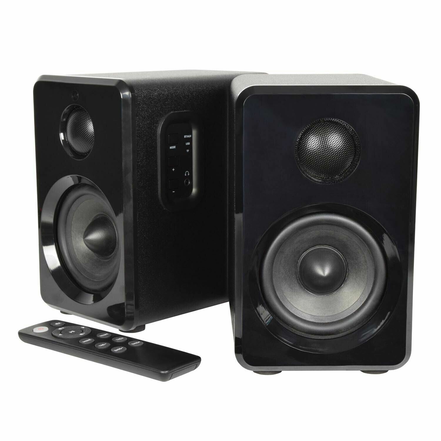 Active Wireless Bluetooth Bookshelf Speakers Pair AUX/USB/SD + Remote Black