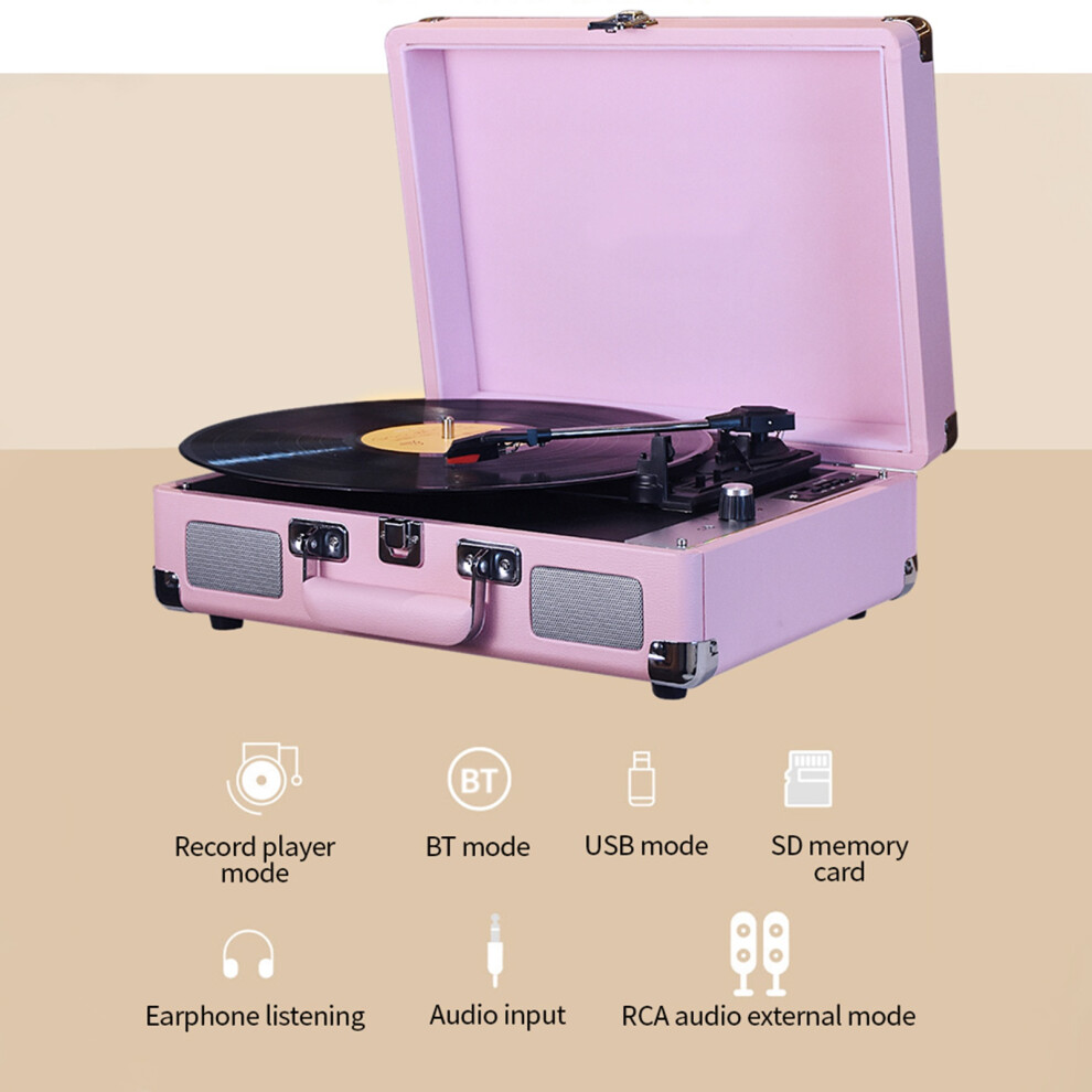 Portable Bluetooth Vinyl Record Player 33/45/78 RPM Pink UK