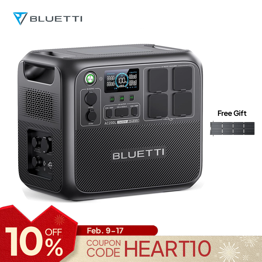 BLUETTI AC200L 2048Wh 2400W Power Station Solar Generator Emergency Power Supply