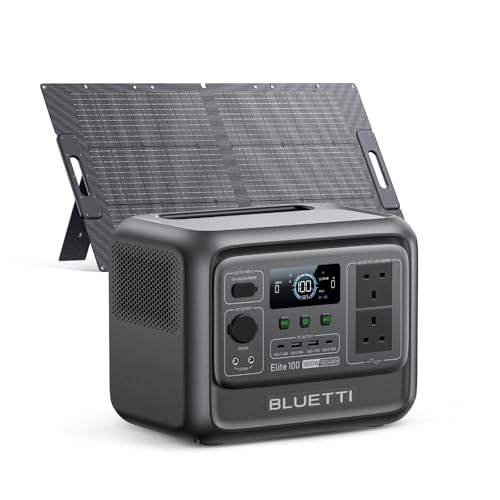 BLUETTI Solar Generator Elite 100 V2 (2025 New) with 100W Solar Panel Included, 1024Wh Portable Power Station w/ 4 1800W AC Outlets, 35% Smaller, Ideal for Camping, Emergencies, Backup Power