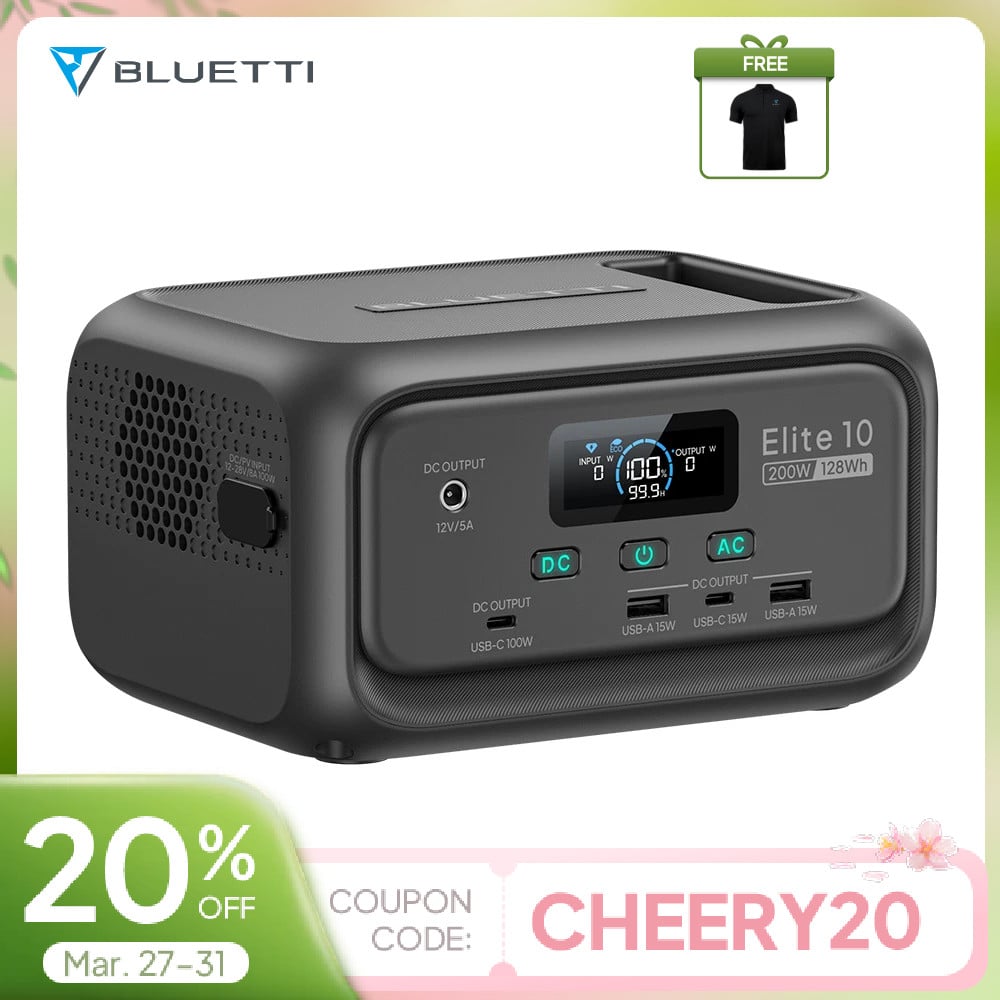 BLUETTI Elite 10 128Wh 200W Mini Portable Power Station Solar Generator Trip