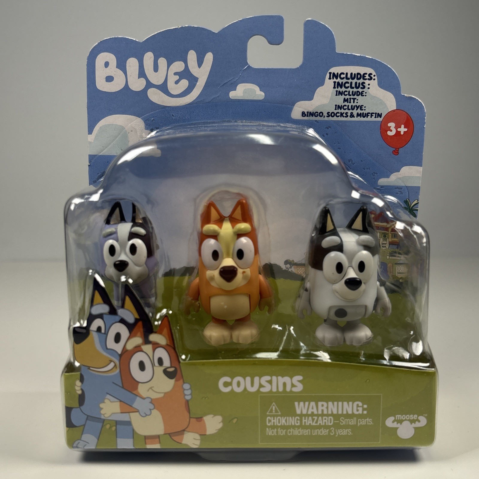 Bluey Cousins Figure 3 Pack Muffin Socks Bingo Playset Articulated 2.5 Inch New