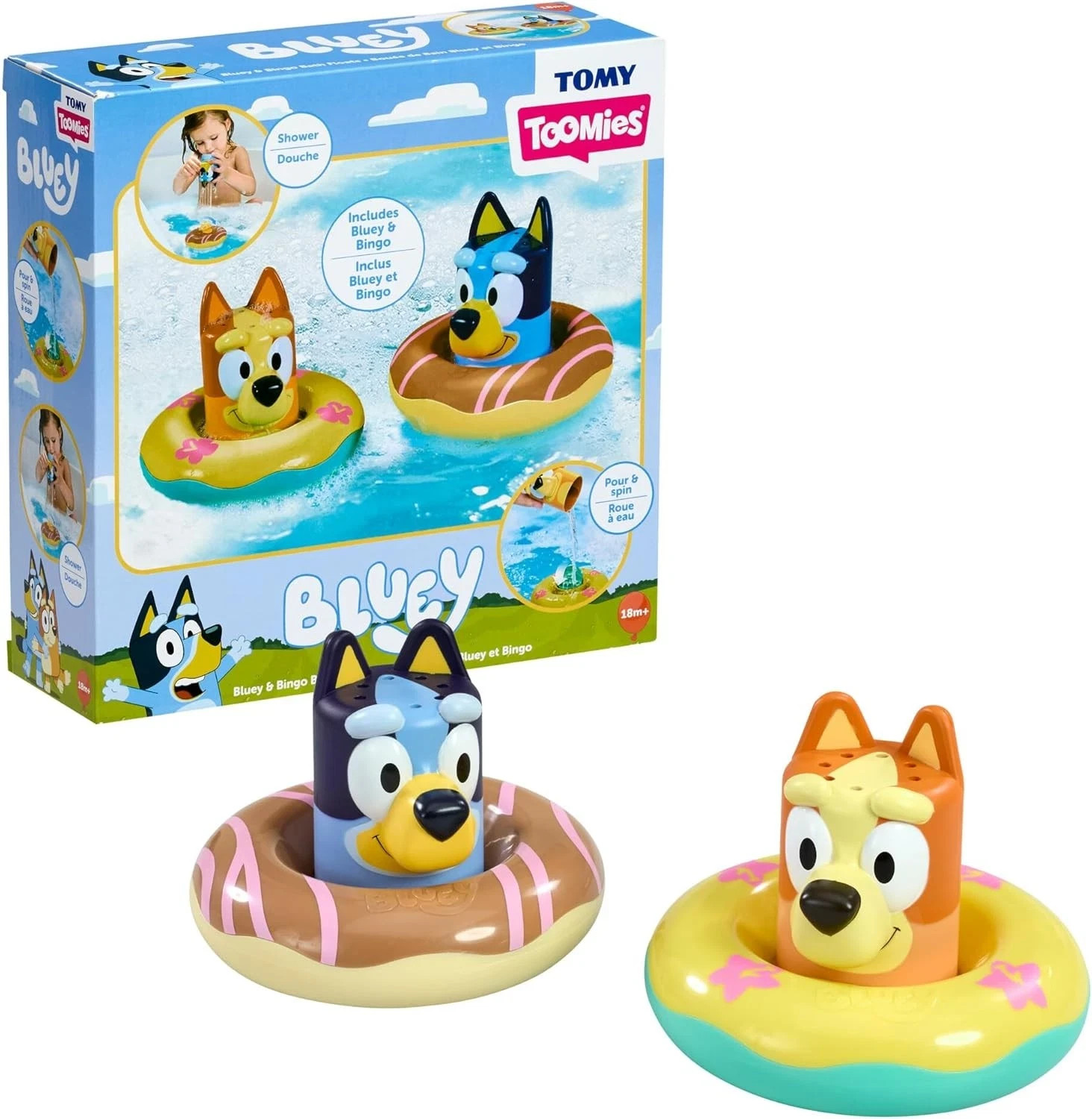 Toomies Bluey Bath Float 2 Pack | Pouring Cup Bluey and Bingo ToddlerBath Toys in Floating Pool Rings with Water Wheels | Officially Licensed BlueyToys | Toddler Toys for 18 Month Old Plus