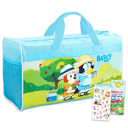 Bluey Duffle Bag Set For Kids - Bundle With Bluey Luggage Carry On Suitcase Bag, Stickers, and More | Children Travel Activity Set for Boys, Girls, Multicolor, Bluey Travel Bag, Bluey Gym Bag, Bluey
