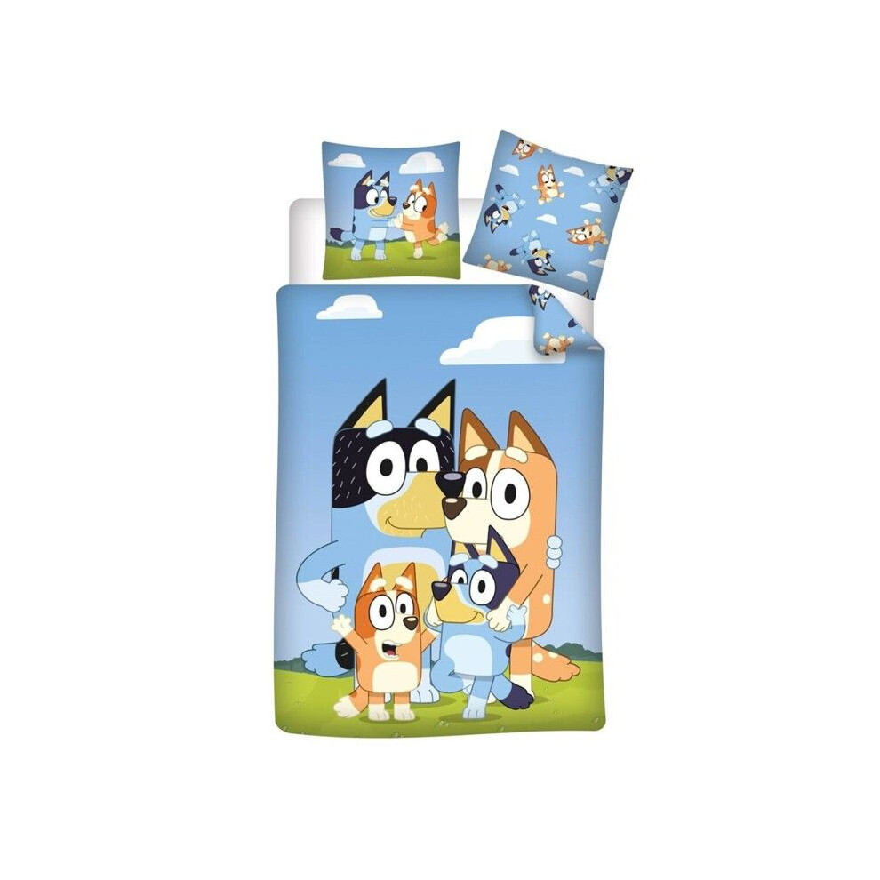 Jerry Fabrics Bluey Family Bed Linen Set ? Reversible Duvet Cover 140 x 200 cm and Pillowcase 70 x 90 cm ? MultiColoured ? 100% Cotton