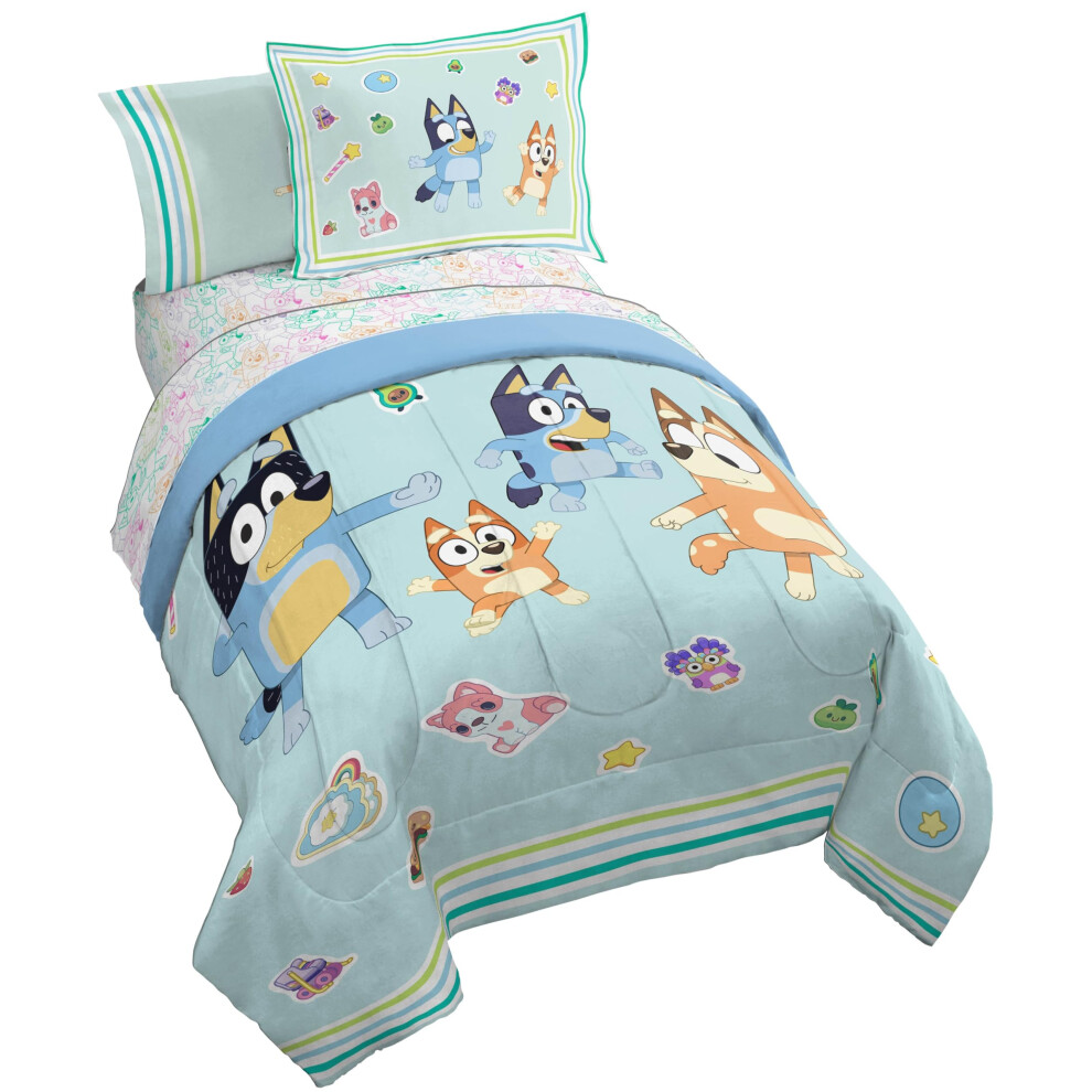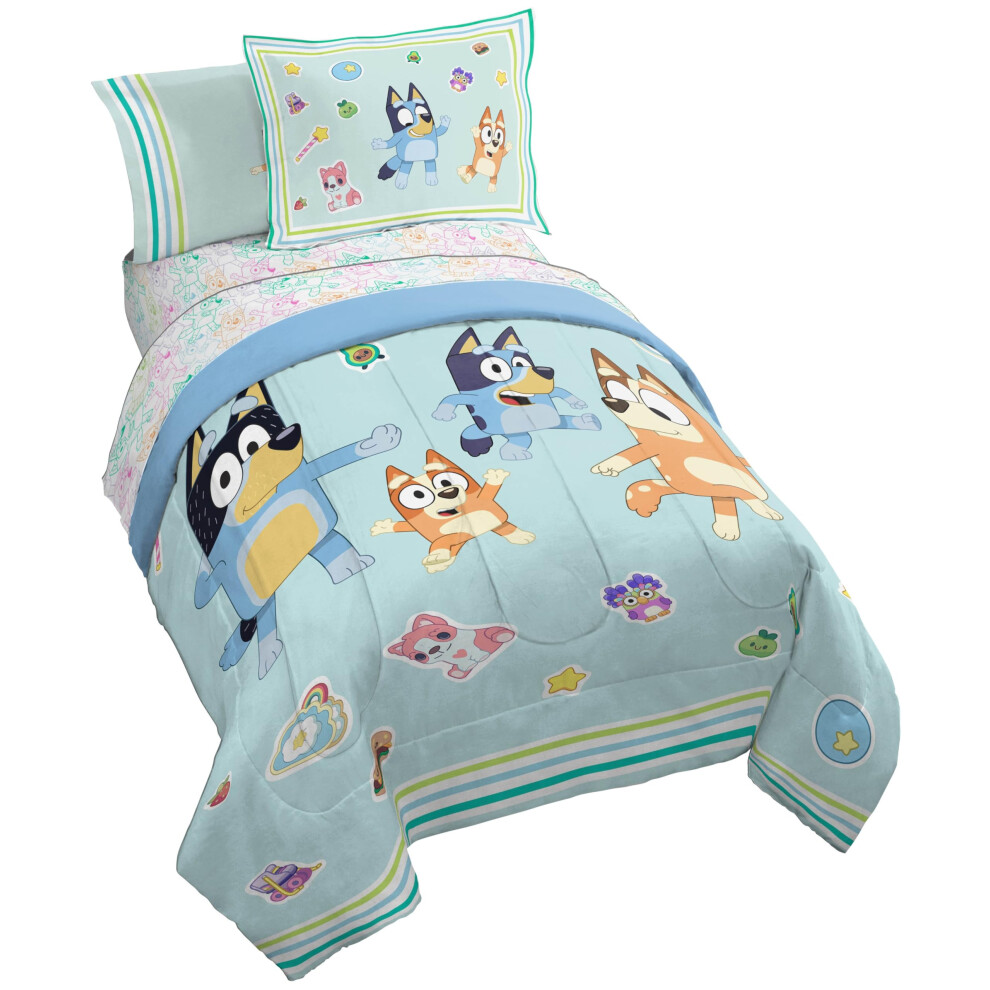 Jay Franco Kids Comforter Set Includes Sheets and Pillow Covers - Soft and Cozy Bed Set for Stylish Room Decor Blue - Bluey 5 Piece Twin Size Beddin