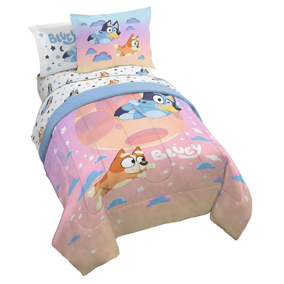 Jay Franco Bluey & Bingo Full Comforter Set - 7 Piece Bed Set Includes Sheet Set & Pillow Covers - Super Soft Clouds & Stars Kids Bedding